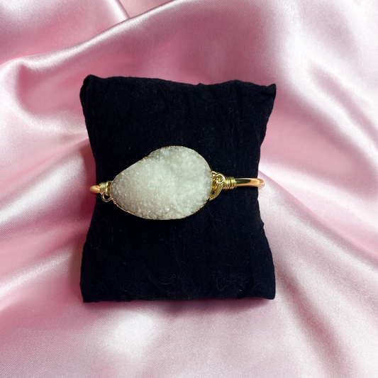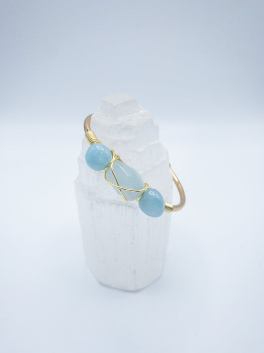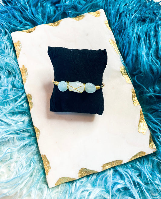 3 Stone Blue Lace Agate Crystal Open Bracelet
