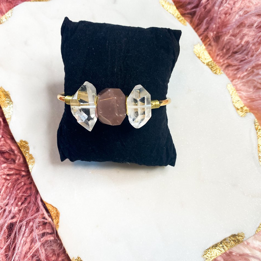 3 Stone Sunstone and Clear Crystal Open Bracelet