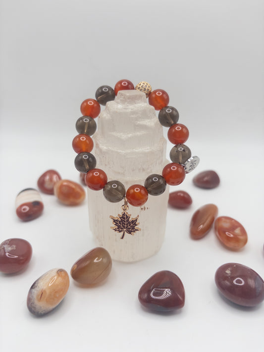 Fall Leaves Smoky Quartz Crystal Bracelet Single or Stack