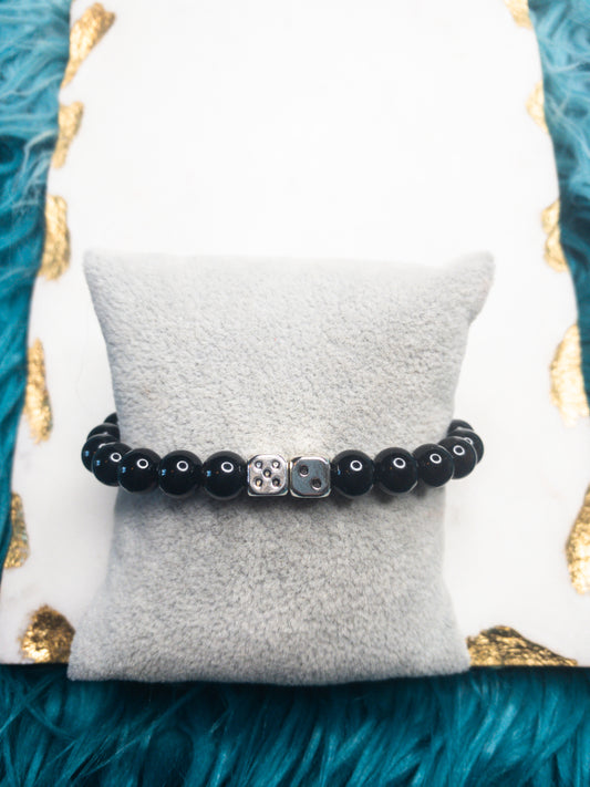 Men's Black Onyx Crystal Bracelet with Dice Accent