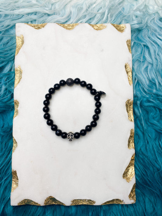 Men's Black Onyx Crystal Bracelet with Skull Accent