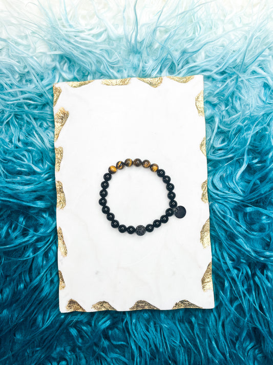 Men's Tigers Eye & Black Onyx Crystal Bracelet