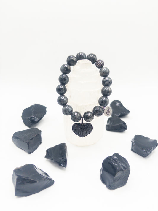 Mens Clear Quartz & Onyx Crystal Bracelet