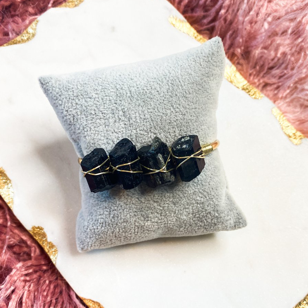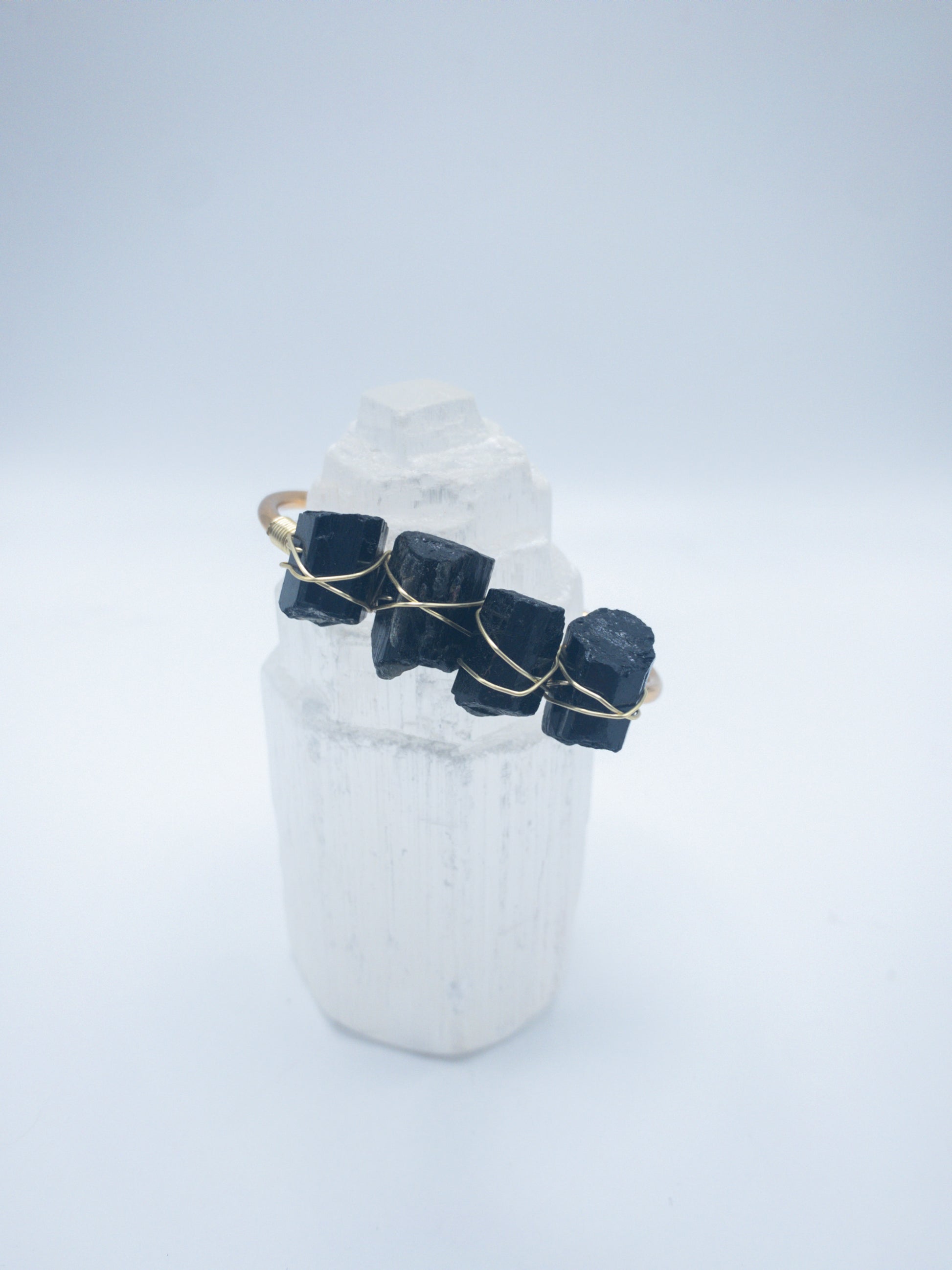 4 Stone Black Tourmaline Crystal Open Bracelet
