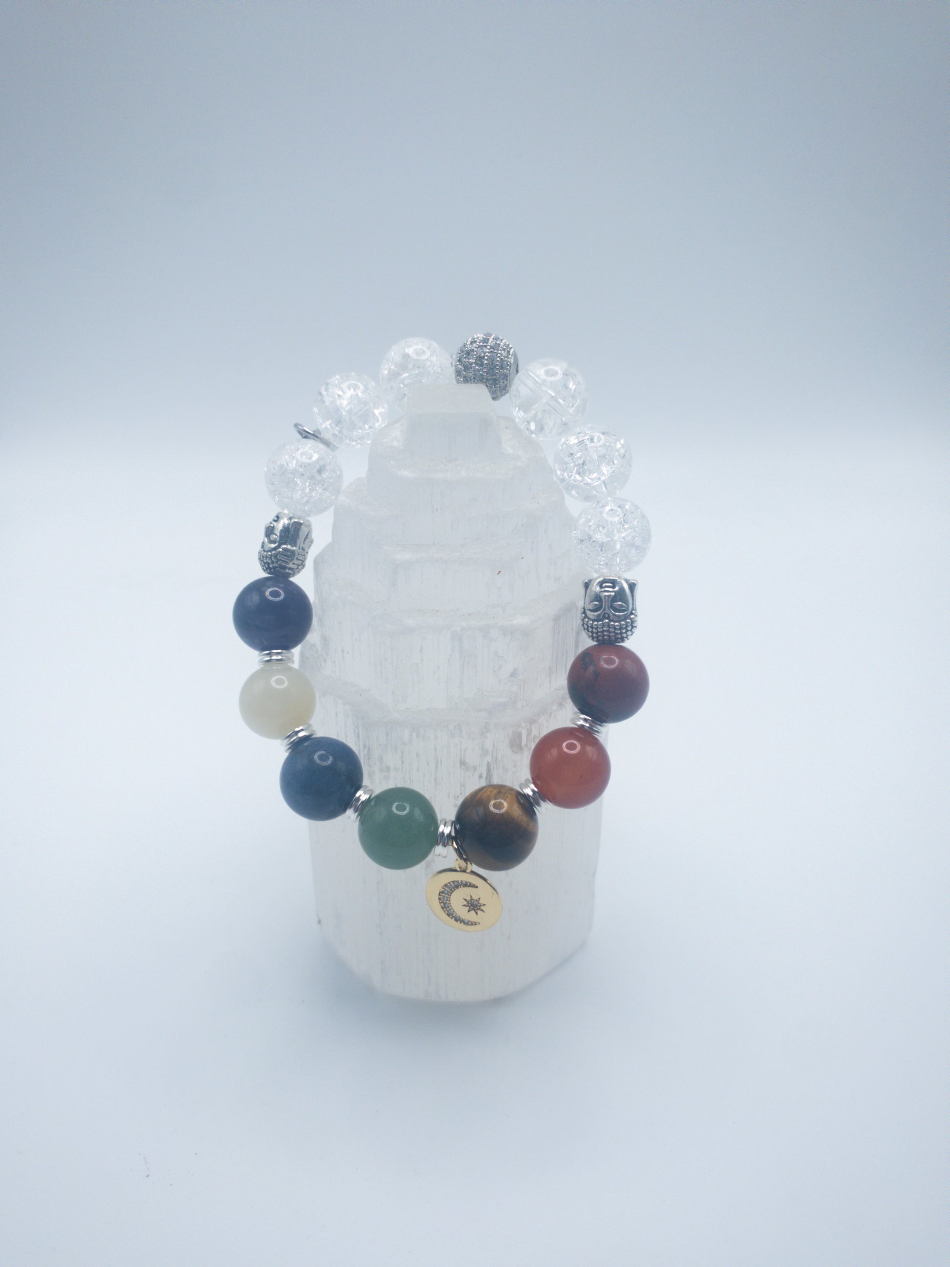 7 Chakra Balancing Buddha Crystal Bracelet - Clear Crack Quartz