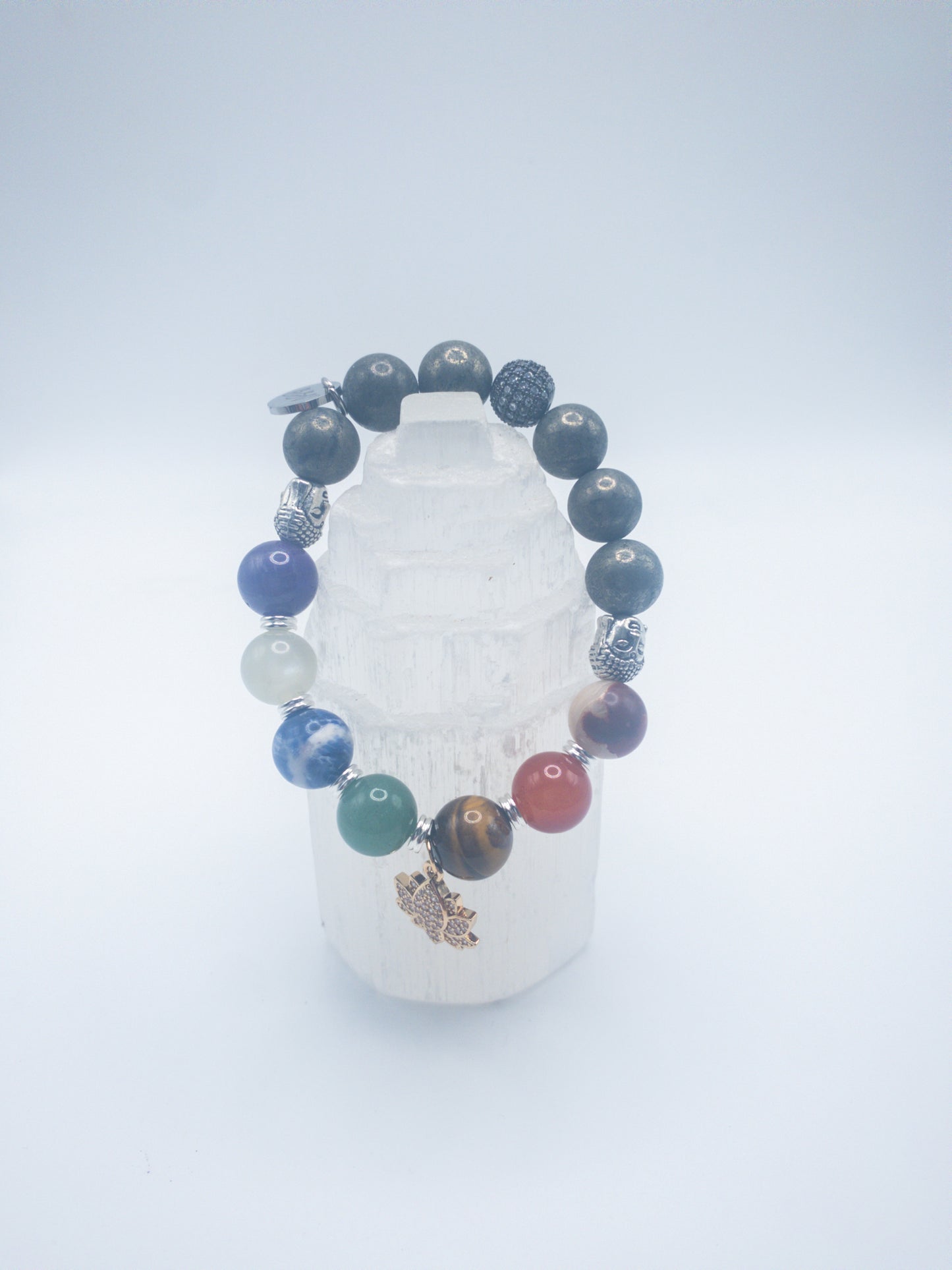 7 Chakra Balancing Buddha Crystal Bracelet - Pyrite