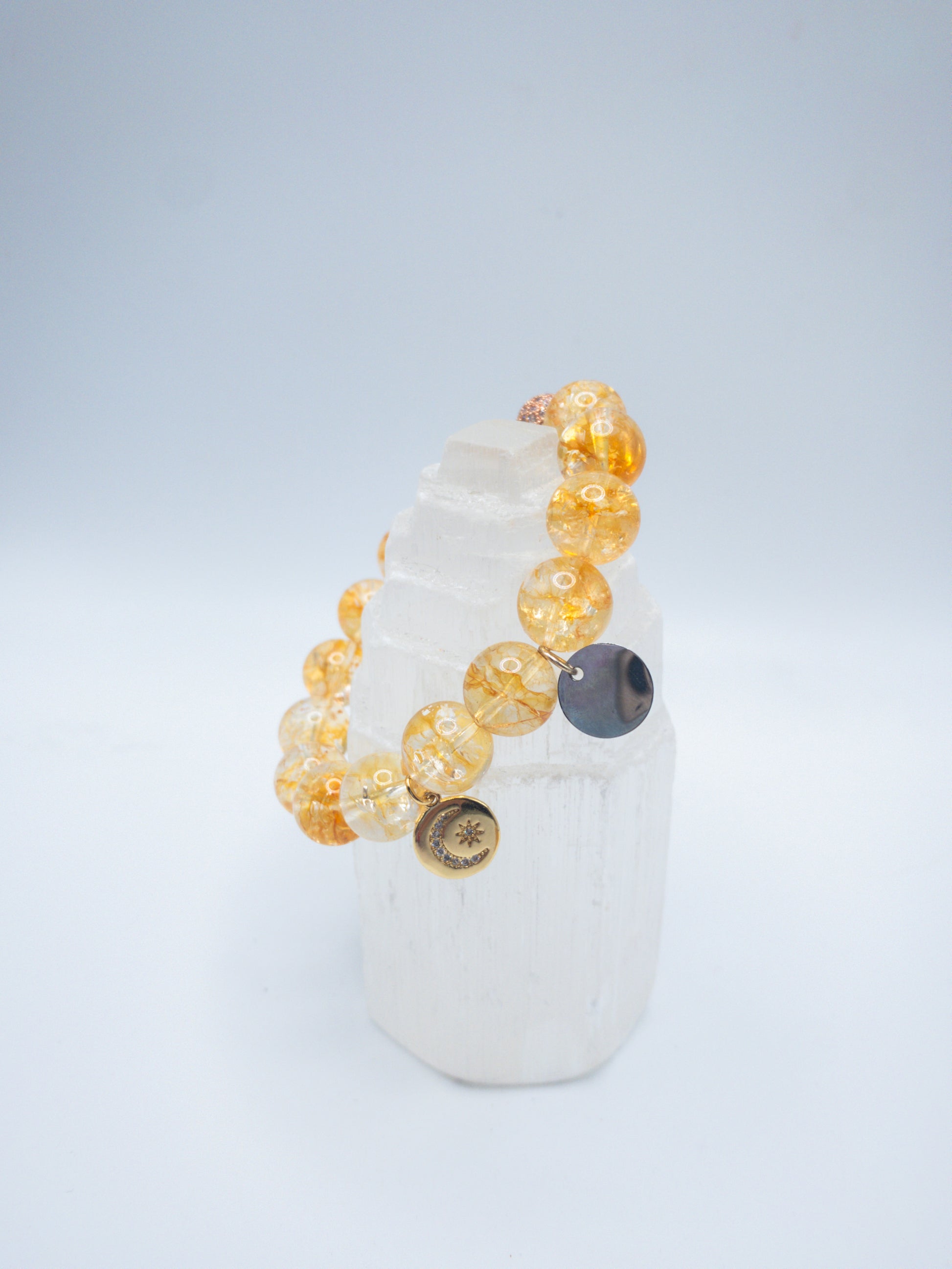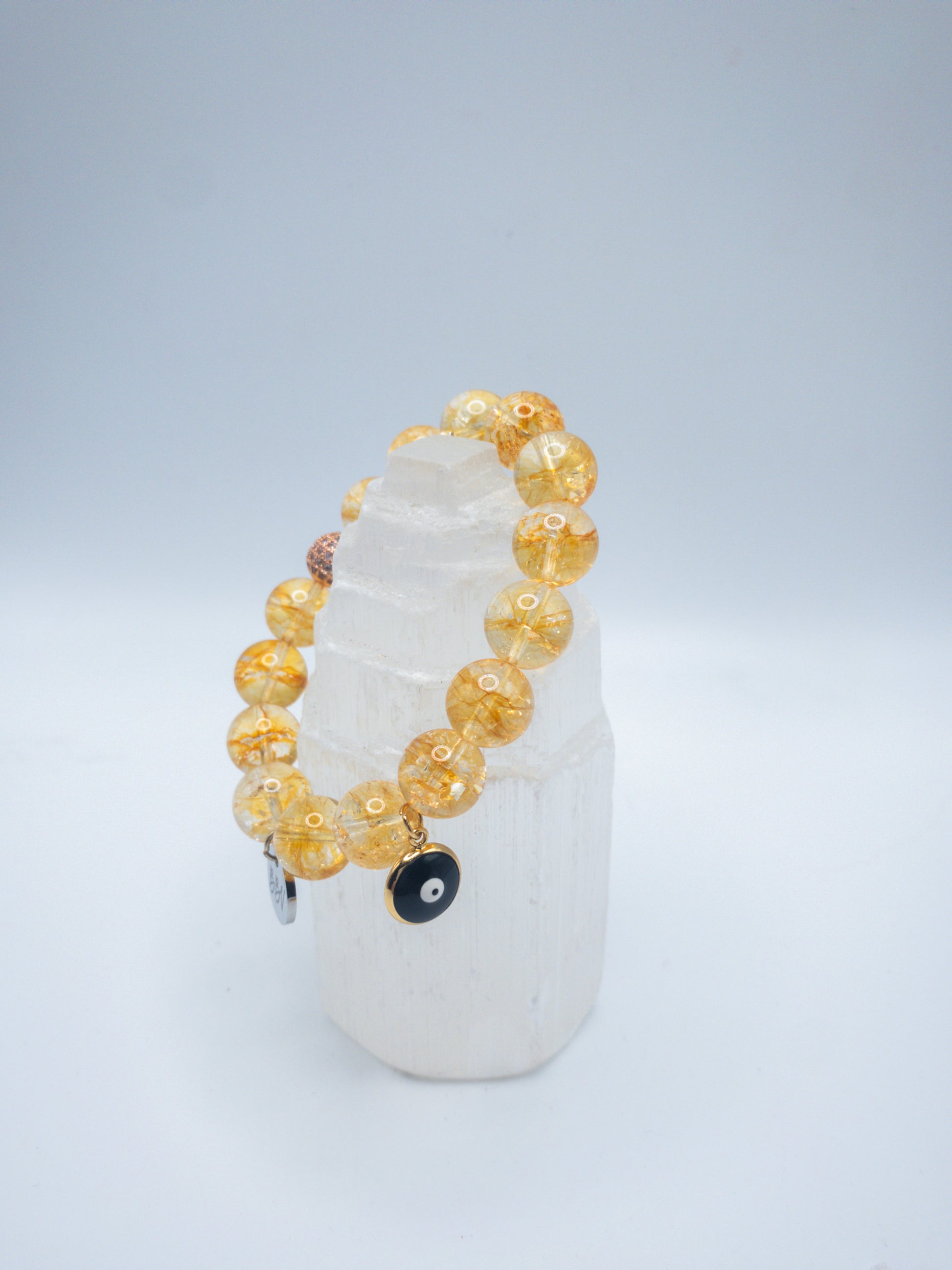 All bracelets are handmade and crafted with high quality natural gemstones. Each bracelet is uniquely yours. Natural gemstones vary slightly in color and size. Remove before exposure to water or chlorine. Avoid direct contact with products such as lotion, hairspray, makeup, and perfume. As with any jewelry, it is best to remove bracelets before sleeping and physical activity. It is best to roll bracelets over the wrist to help preserve the quality and stretch. Always remember to treat your bracelets gently with care and good vibes.
