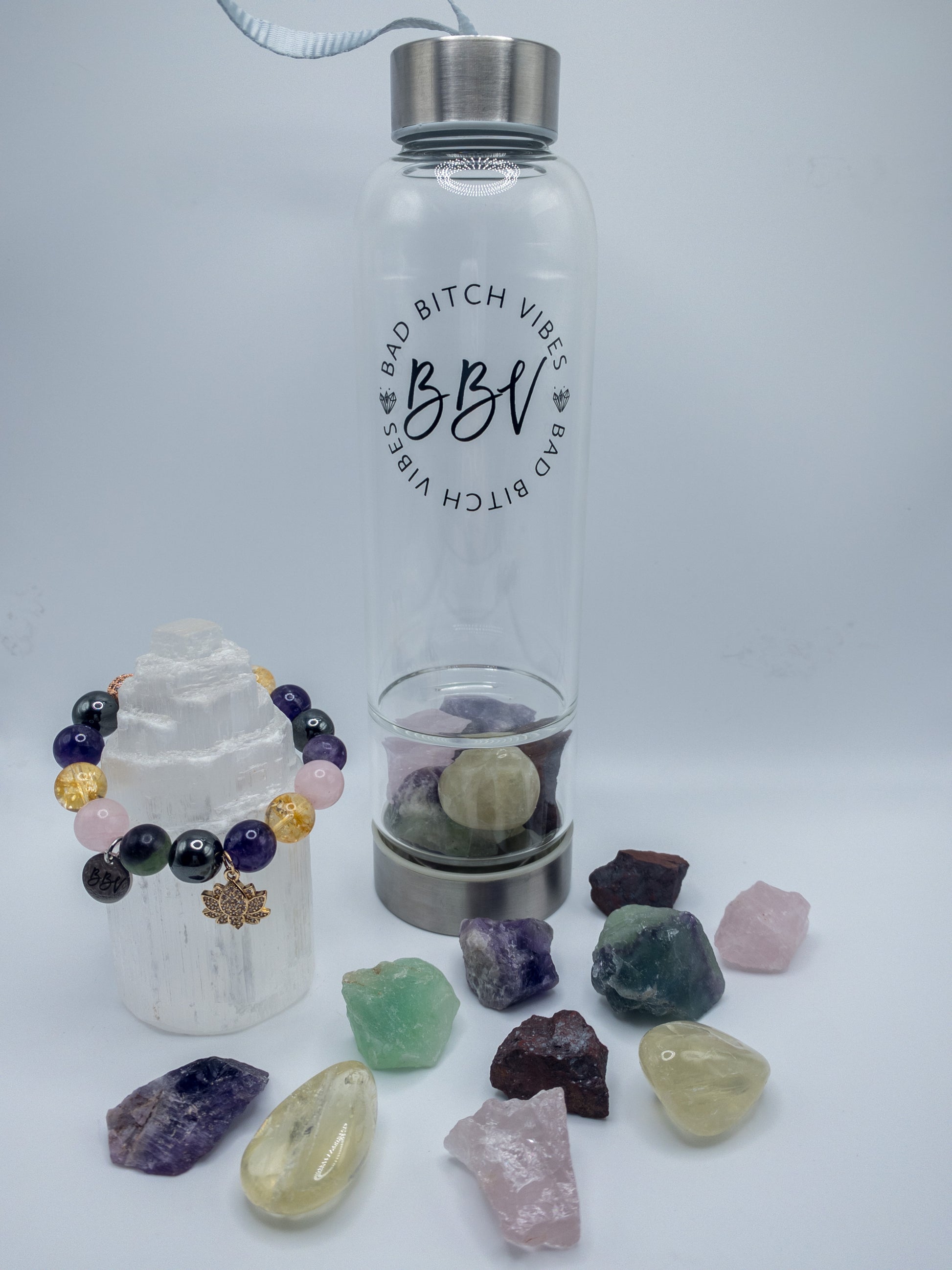 The Yoga Vibes Crystal Set is a set of 5 unique stones to help you with everything from focussing and pushing through your most intense and trying yoga session to keeping you calm, grounded and focused. Pairs perfectly with the yoga vibes infused water bottle.