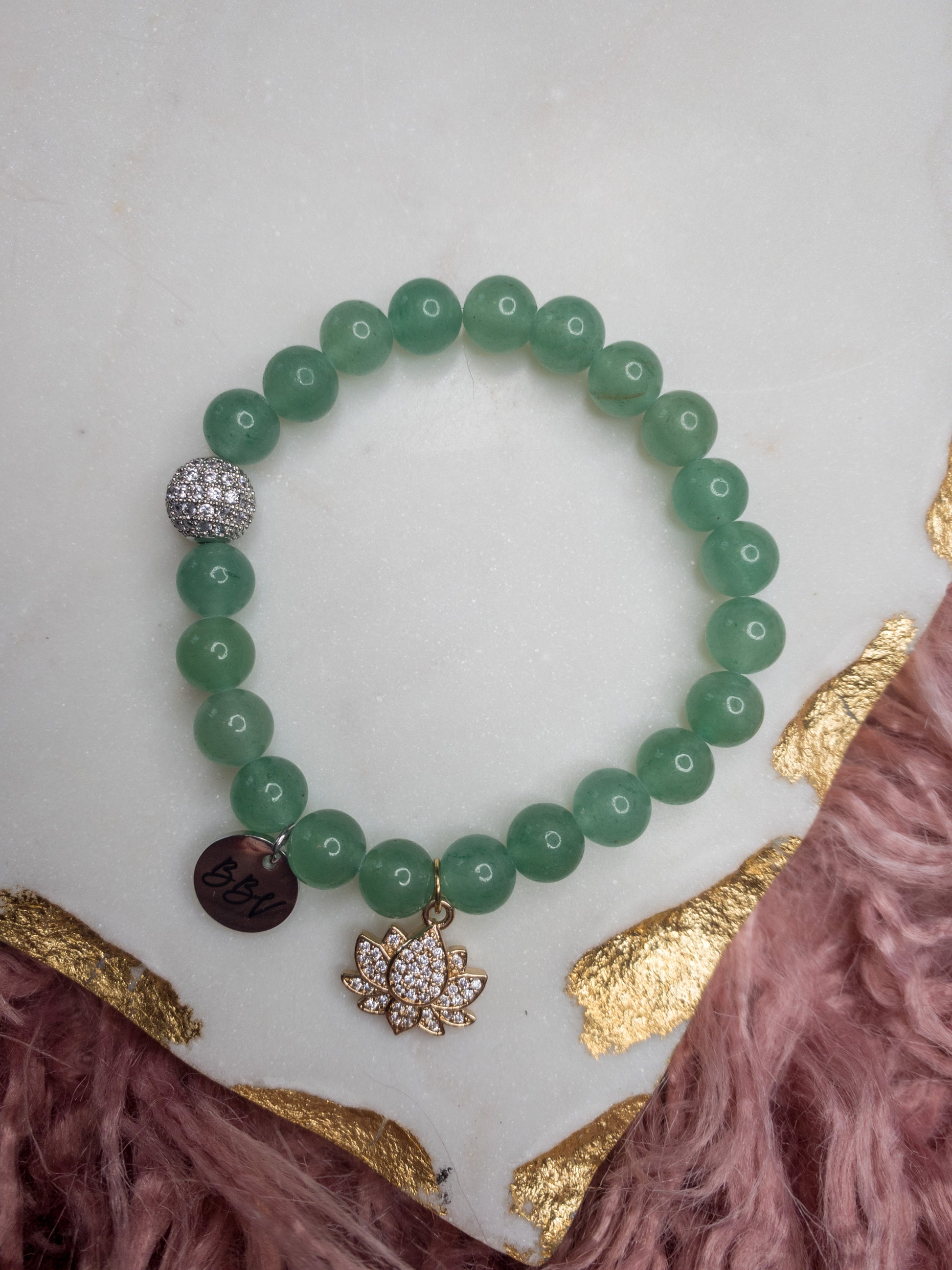 Green Aventurine Lotus Flower Crystal Bracelet