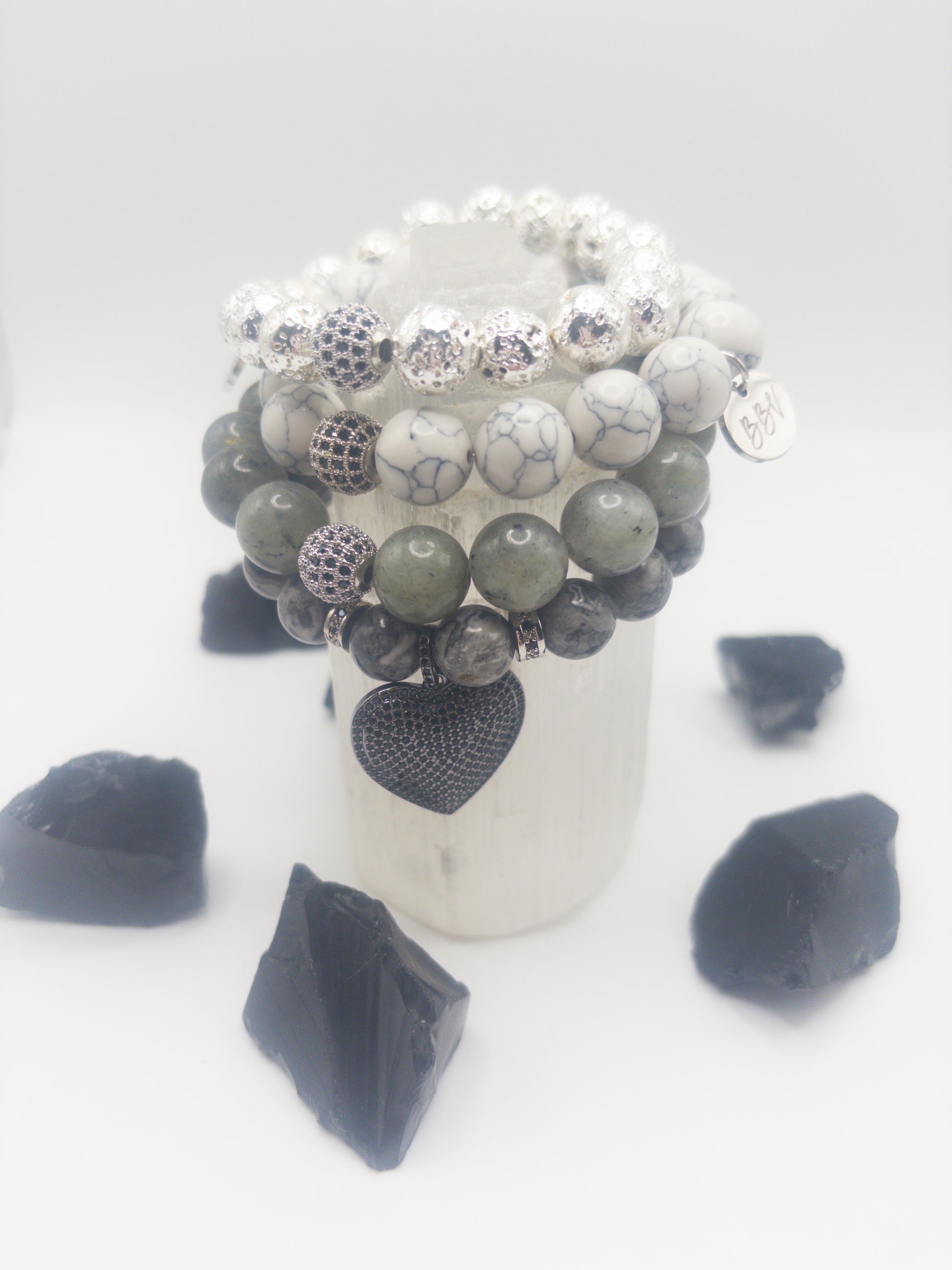 - 12 mm stones (White Howlite & Labradorite)- size and stone colors may vary