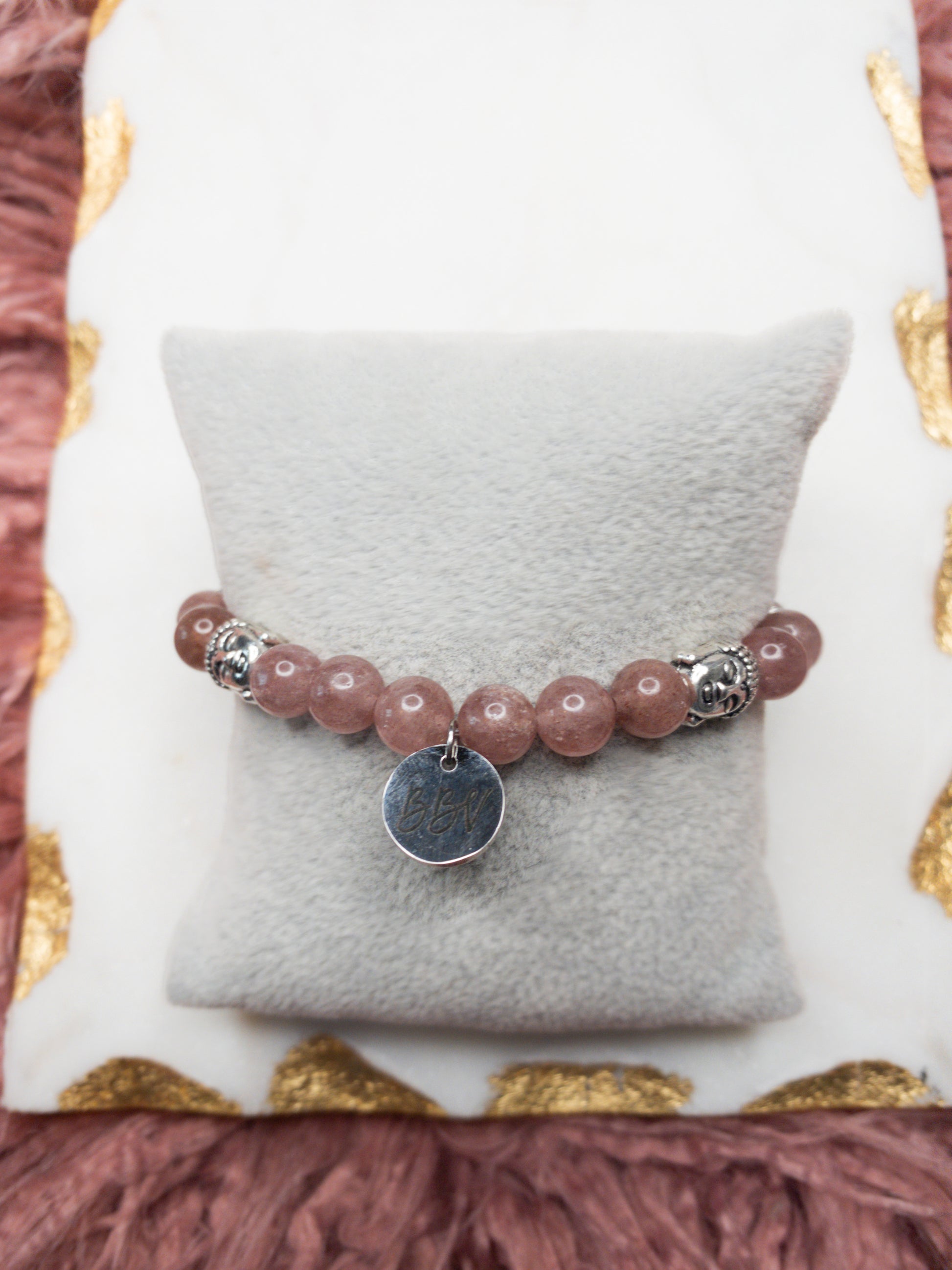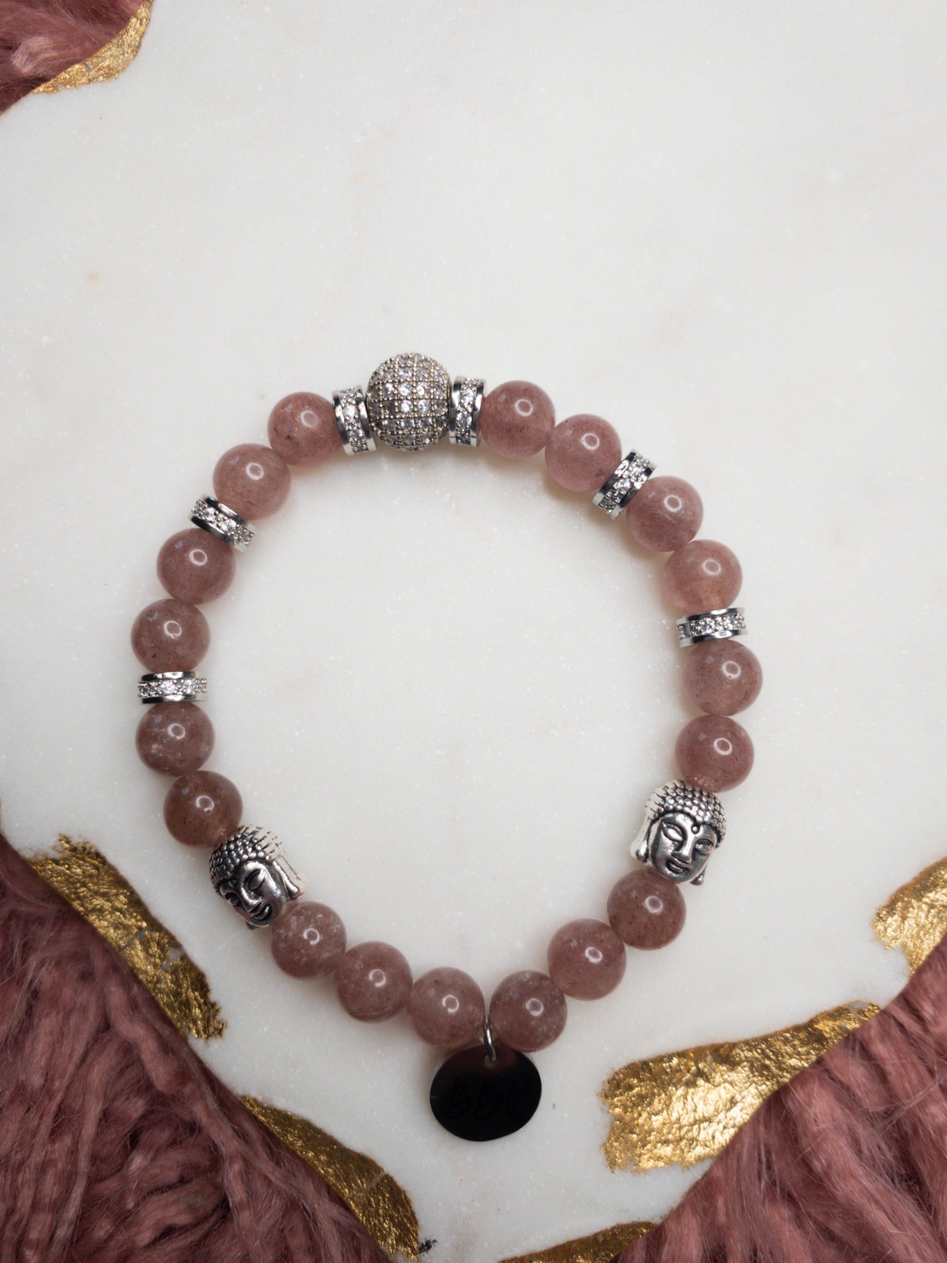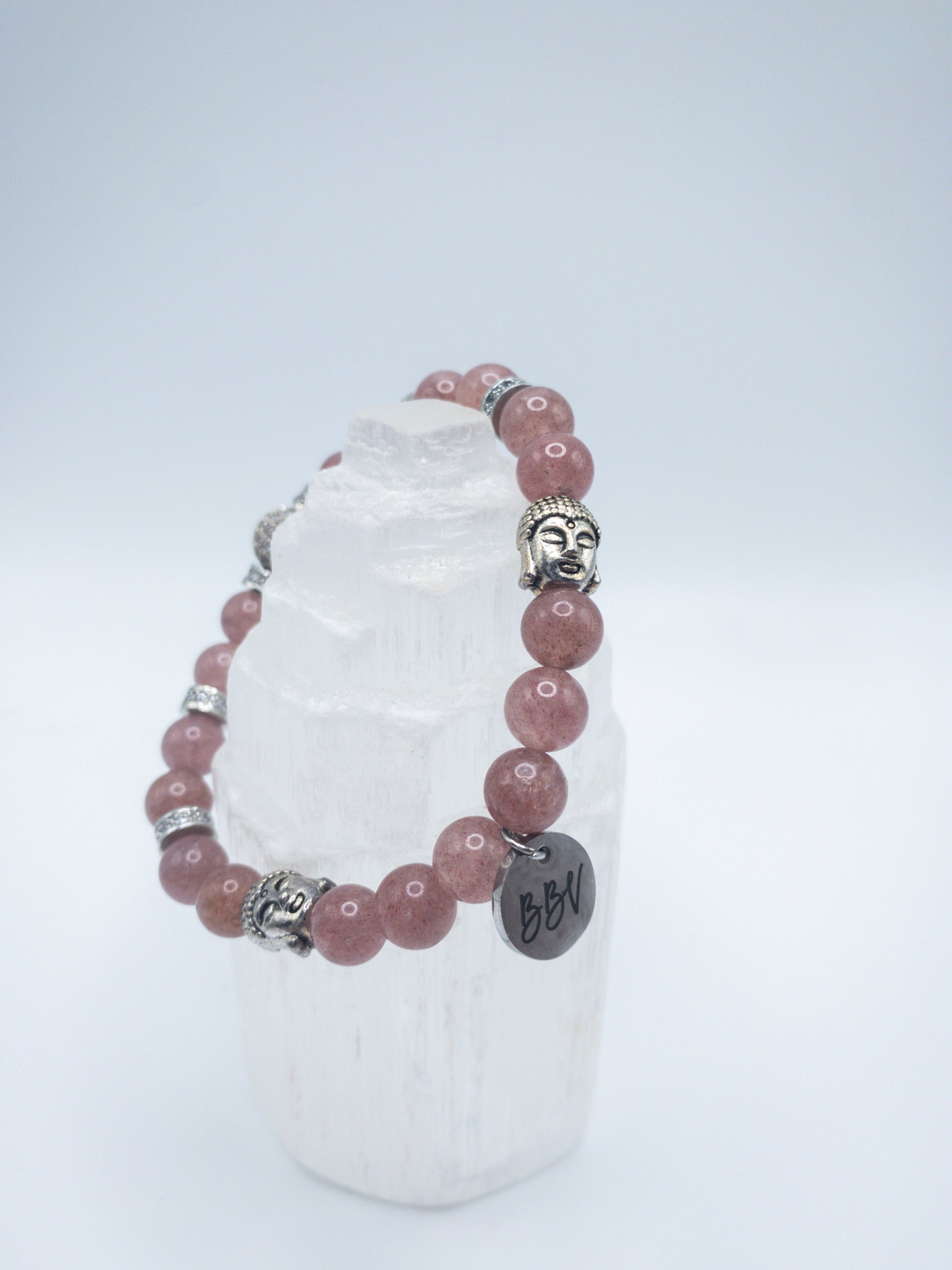 Buddha Head Accent Strawberry Quartz Crystal Bracelet