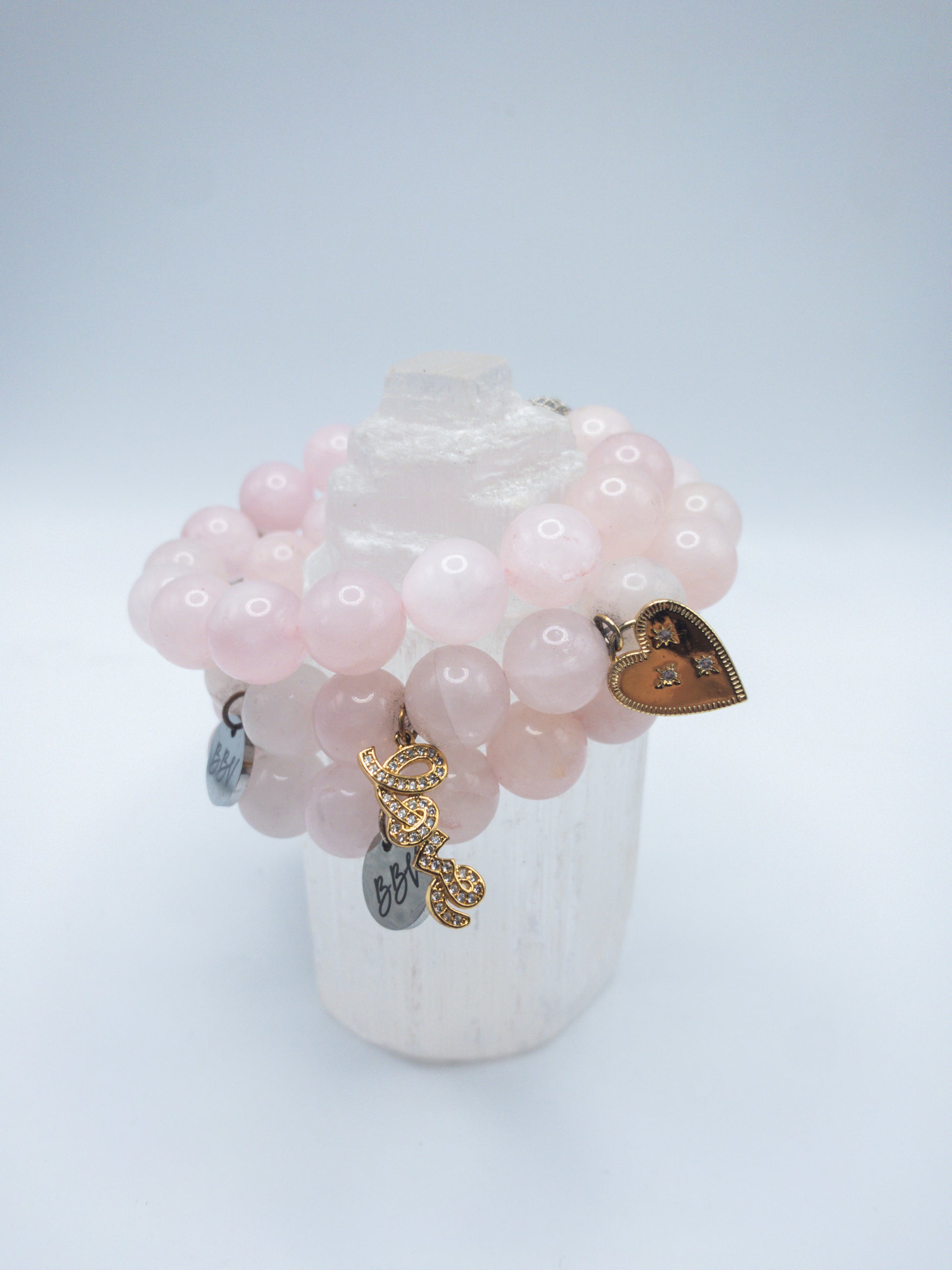 Rose Quartz Gold Crystal Bracelet Set