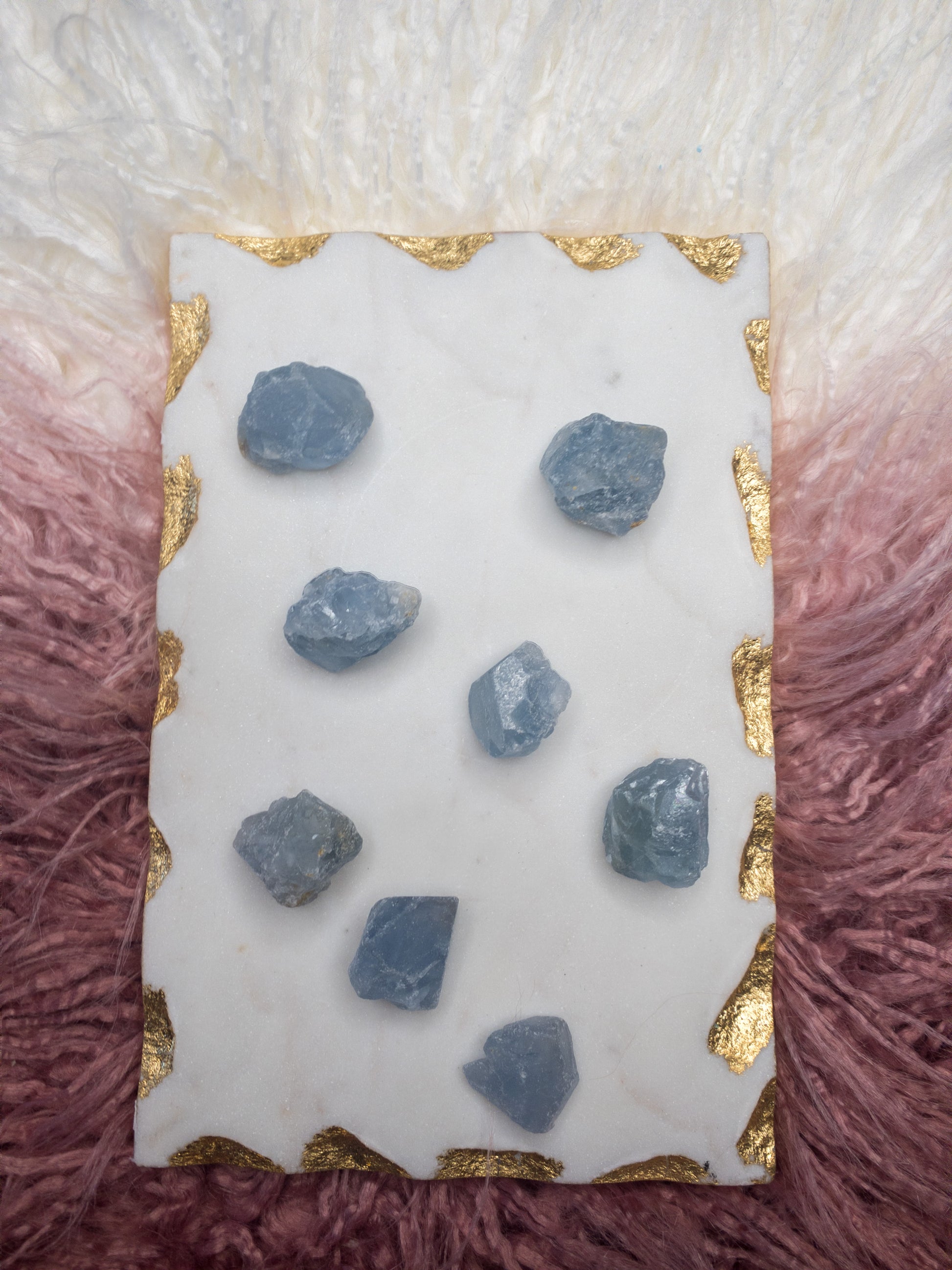 Opening the crown & third eye, Celestite clears the mind, so you are able to recognize spiritual hints. Though it's a high vibrational crystal, the intensity of celestite's uplifting nature is gentle & soothing.