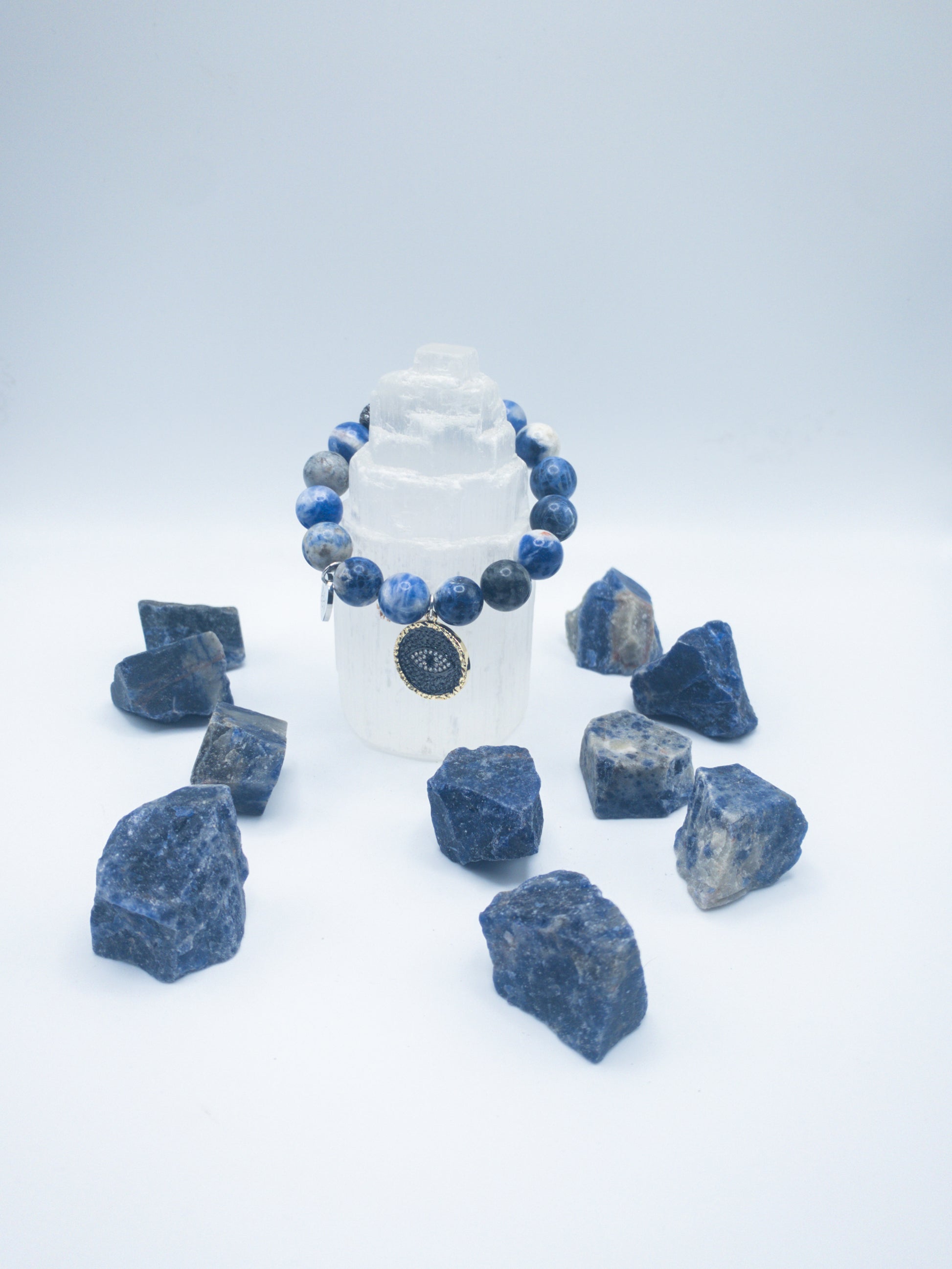 Sodalite helps unblock your throat chakra for better communication, helps bring calmness and order to your thoughts, grounds mood swings and enhances intuition.