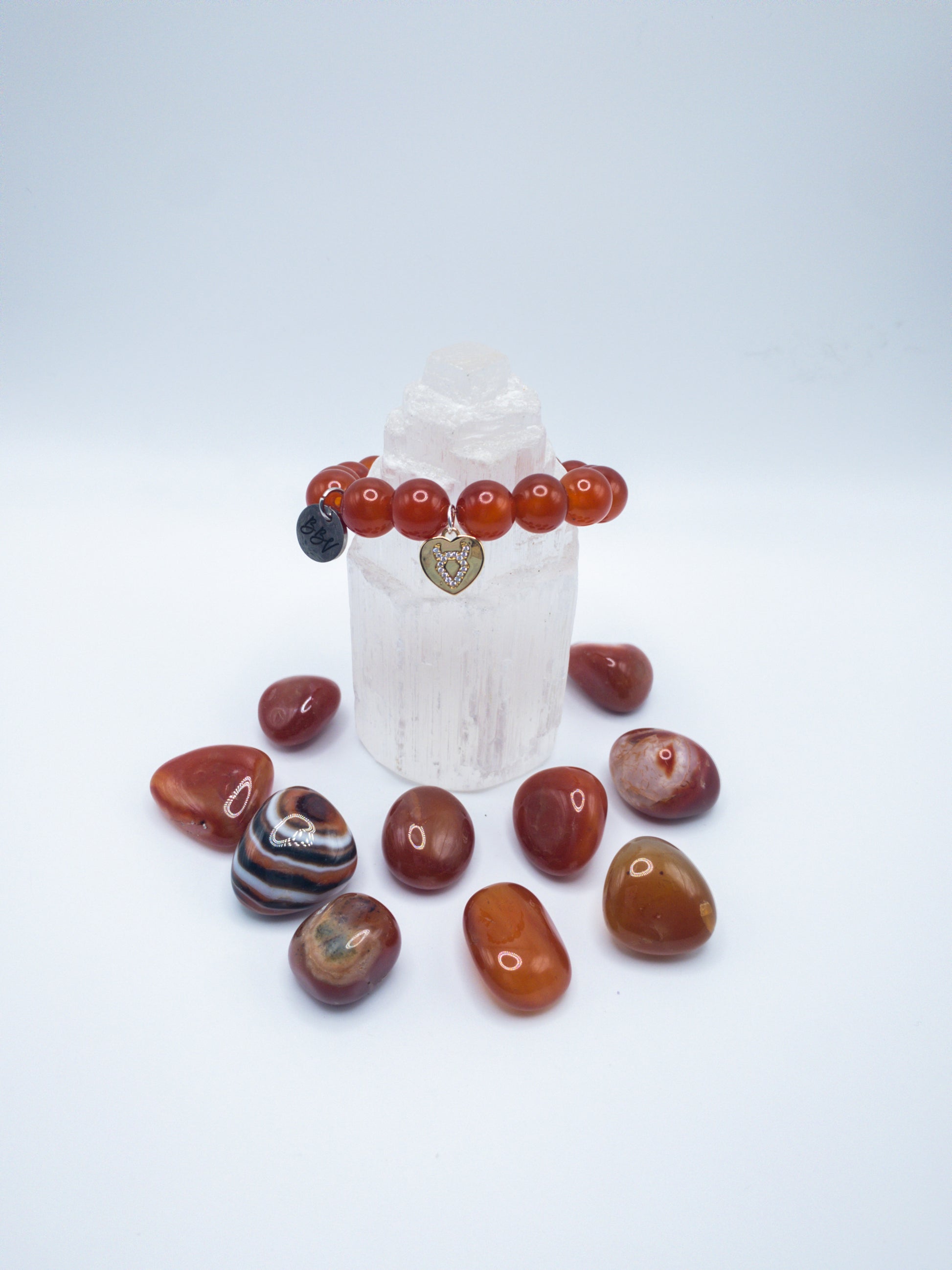 Carnelian- Stone that connects to the three lower chakras promoting energy & creativity; Stimulates muscles; stirs up fertility & libido helping you to step into your own sexuality & power. Carnelian brings healing to bones & ligaments & helps you to feel loose and limber rather than stiff. It also aids in a detoxifying flush to those battling alcohol, drugs and other unhealthy stimulants.